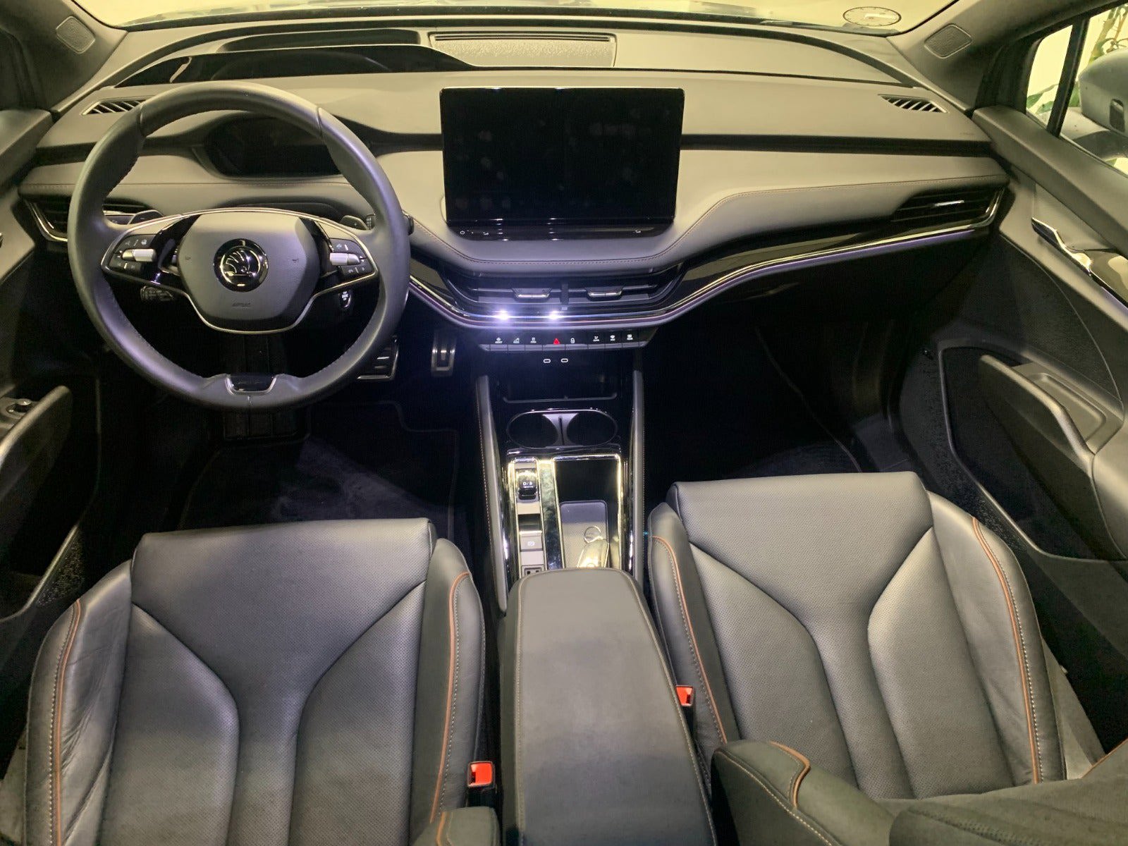 Denne Skoda Enyaq iV kombinerer avanceret teknologi med komfort og sikkerhed. Den er en ideel løsning for dem, der søger et moderne el-køretøj, der tilbyder komfort og praktisk anvendelighed. Kontakt os for en prøvetur og oplev det selv!, fod betjent bagklap, adaptiv fartpilot med kø-assistent, læderindtræk, mørktonede ruder i bag, træthedsregistrering, førerovervågning med advarsel, skiltegenkendelse, varme i forrude, udv. temp. måler, trådløs mobilopladning, alarm, sædekøling