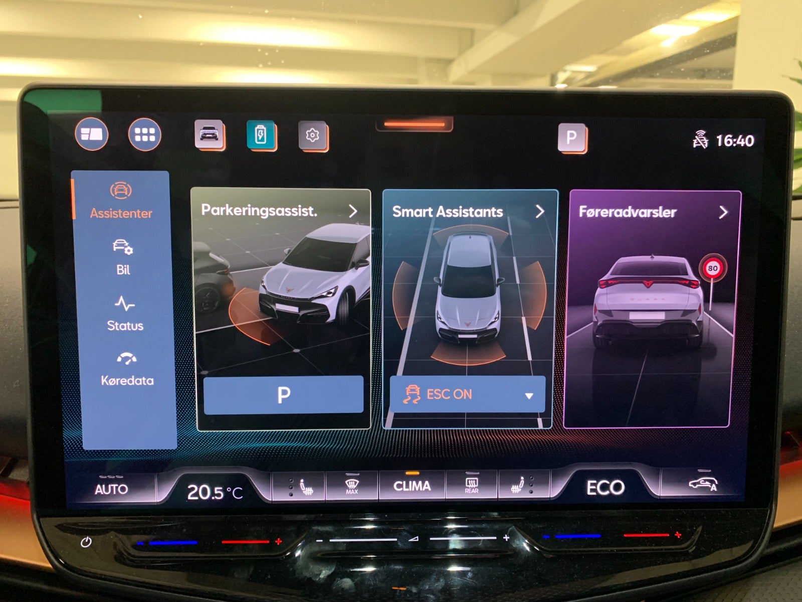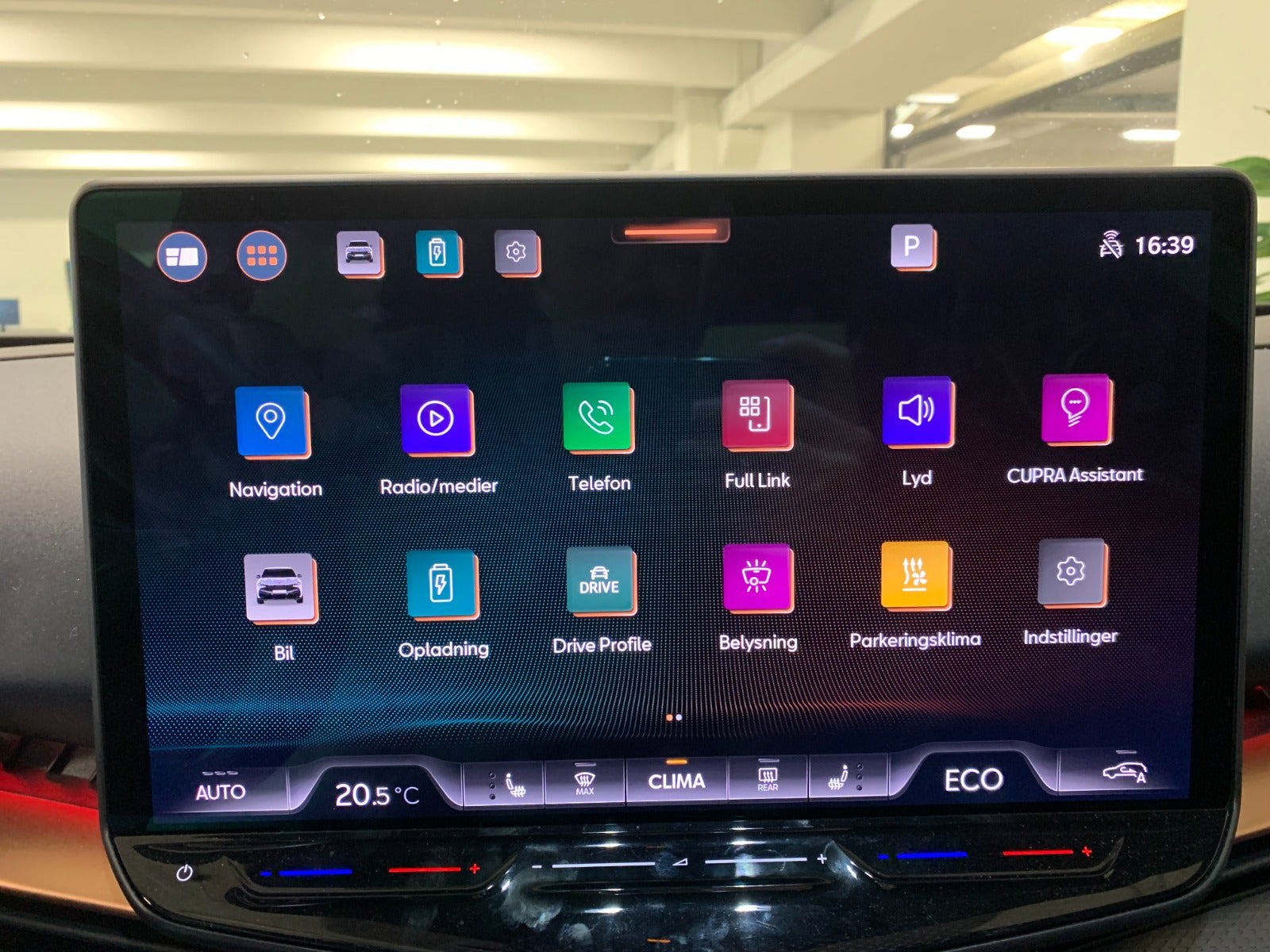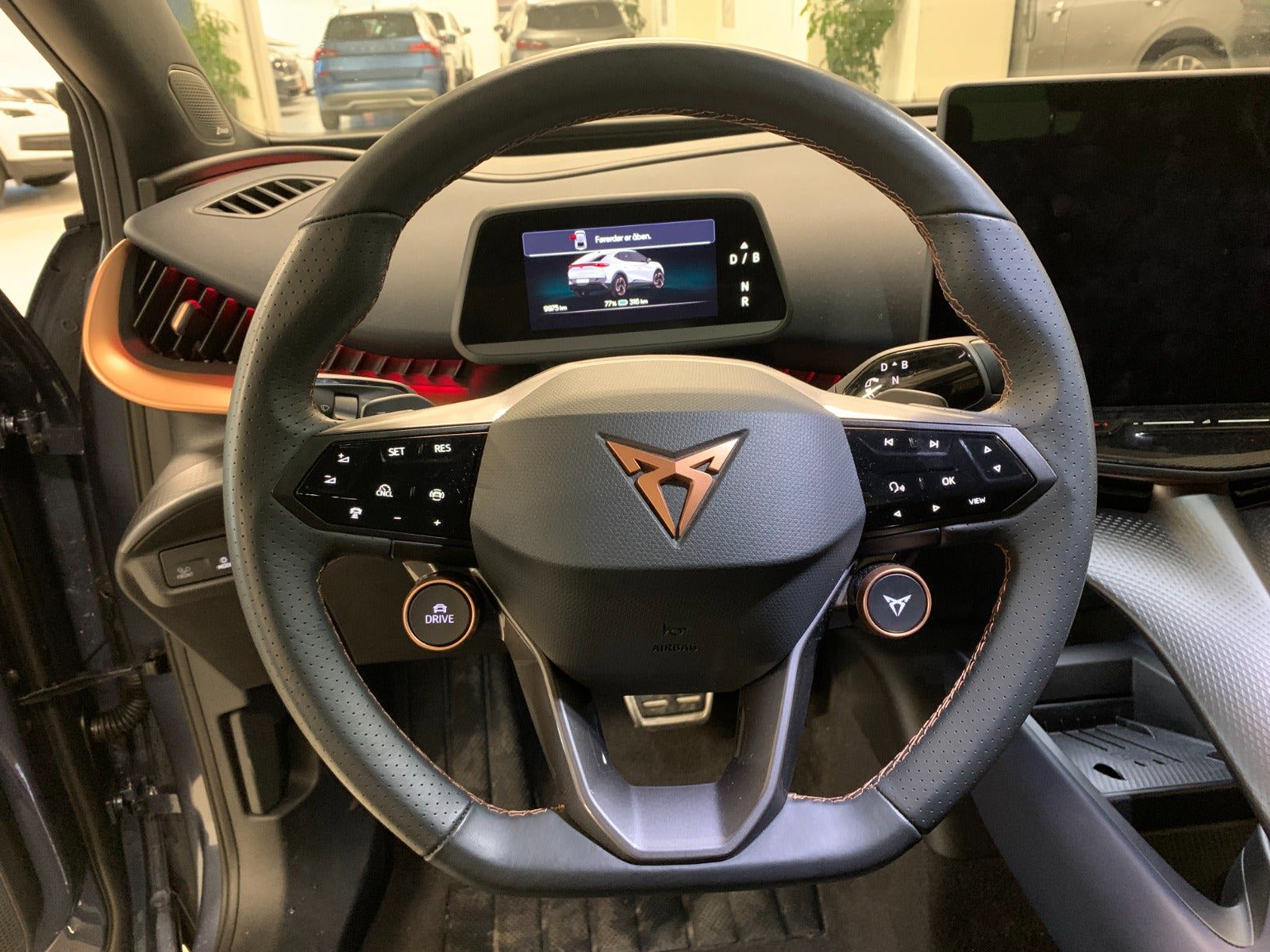 Mørktonede ruder, Håndfri elektrisk bagklap, Alufælge, Klimaanlæg, CUPRA multifunktionslæderrat, Opvarmet rat, Regn- og lyssensor, Adaptiv fartpilot, KESSY advanced, Full LED, Digitalt cockpit, Elektriske sidespejle, Trådløs oplader, Varmepumpe, Tavascan Blue, Area View
